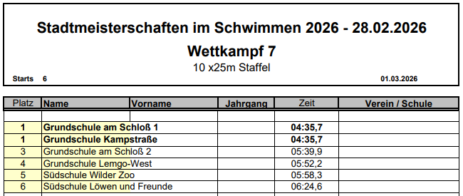 Am 28.02.2026 fanden die diesjährigen Stadtmeisterschaften im Schwimmen statt.