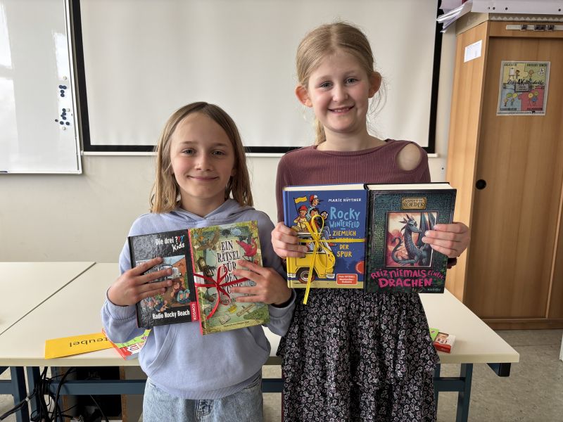 Sie haben Lina Streubel als beste Leserin des Jahrgangs und Alexa Schäfer als fast beste Leserin des Jahrgangs auserkoren. Die Jury meinte, dass die Entscheidung ihnen sehr schwer gefallen sei, da sie nur tolle Vorträge gehört hatten. Nun wird Lina unsere Schule beim Lesewettbewerb in der Stadtbücherei vertreten.
